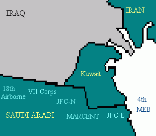 The day after the United Nations resolution deadline expired, January 16, 1991, the United States started their campaign against Iraq. Bombs were dropped on Baghdad, radar and air defense installations were attacked from the air. These attacks rendered the Iraqis worthless in the air and destroy the ability for Iraq to retaliate. Other forces form the United Nations helped with the air and ground campaign. (click here for a Photo Gallery of the Gulf War)